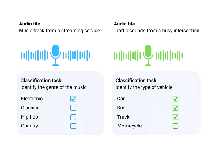 Unlock the full potential of your audio content with TagX's unparalleled audio classification services! We offer expertly curated annotated datasets that allow you to identify and categorize audio content with ease, enabling you to train machine learning models for a wide range of tasks. From music genre classification to detecting specific sounds, our state-of-the-art techniques and cutting-edge technology ensure that your audio analysis is accurate and efficient. Don't settle for basic audio analysis - choose TagX and unleash the power of your audio content today!