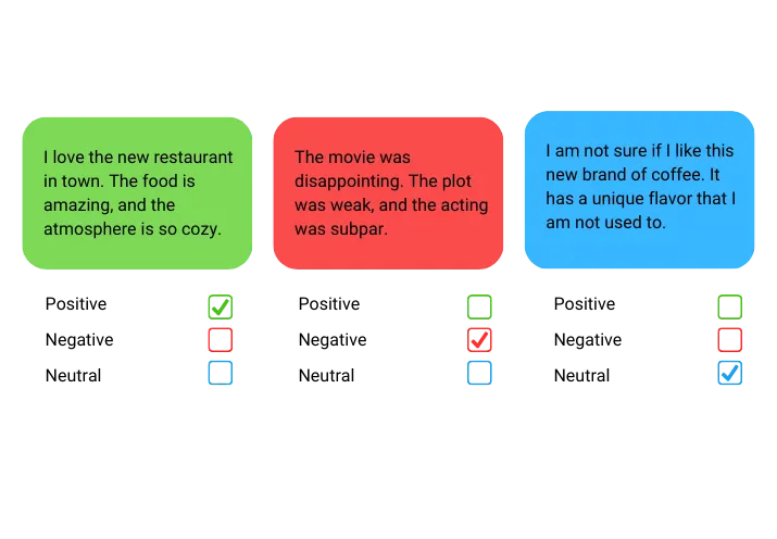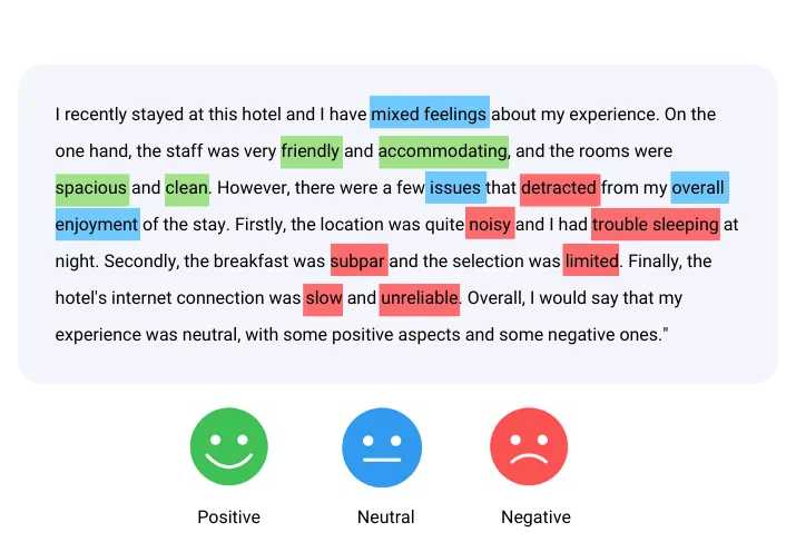 Determine the sentiment of a piece of text, whether it is positive, negative, or neutral. It can be used in applications such as customer feedback analysis, social media monitoring, and brand reputation management.