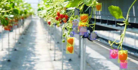 This process begins with fruit detection on trees using computer vision with a sensor and robot arm motion to the position of the detected fruit and fruit harvesting by the end effector without damaging the target fruit and its tree. Our data annotation services can help train computer vision models to identify and differentiate between different types of crops and their maturity levels, which can enable automated vegetable and fruit picking.